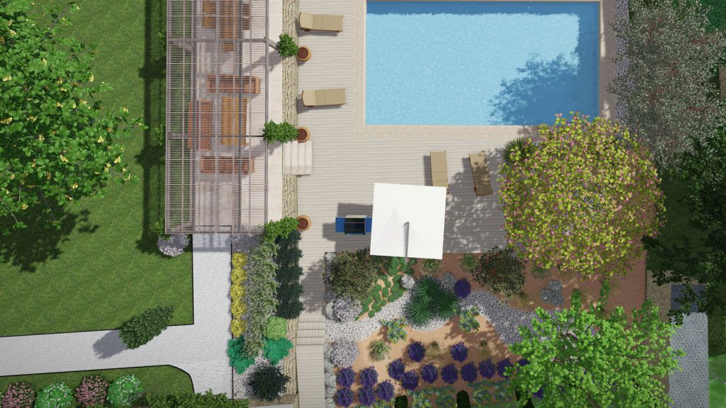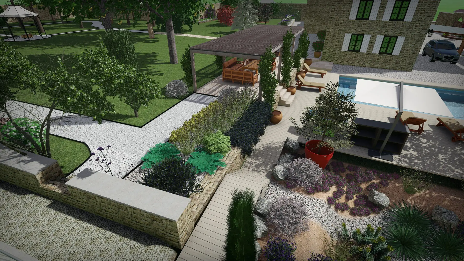 Pour les particuliers, nous concevons des plans d’aménagement extérieur, des visuels 3D photoréalistes et des vidéos immersives pour vous aider à imaginer et concrétiser le jardin de vos rêves : terrasse, piscine, allées, massifs, espace détente ou potager moderne.